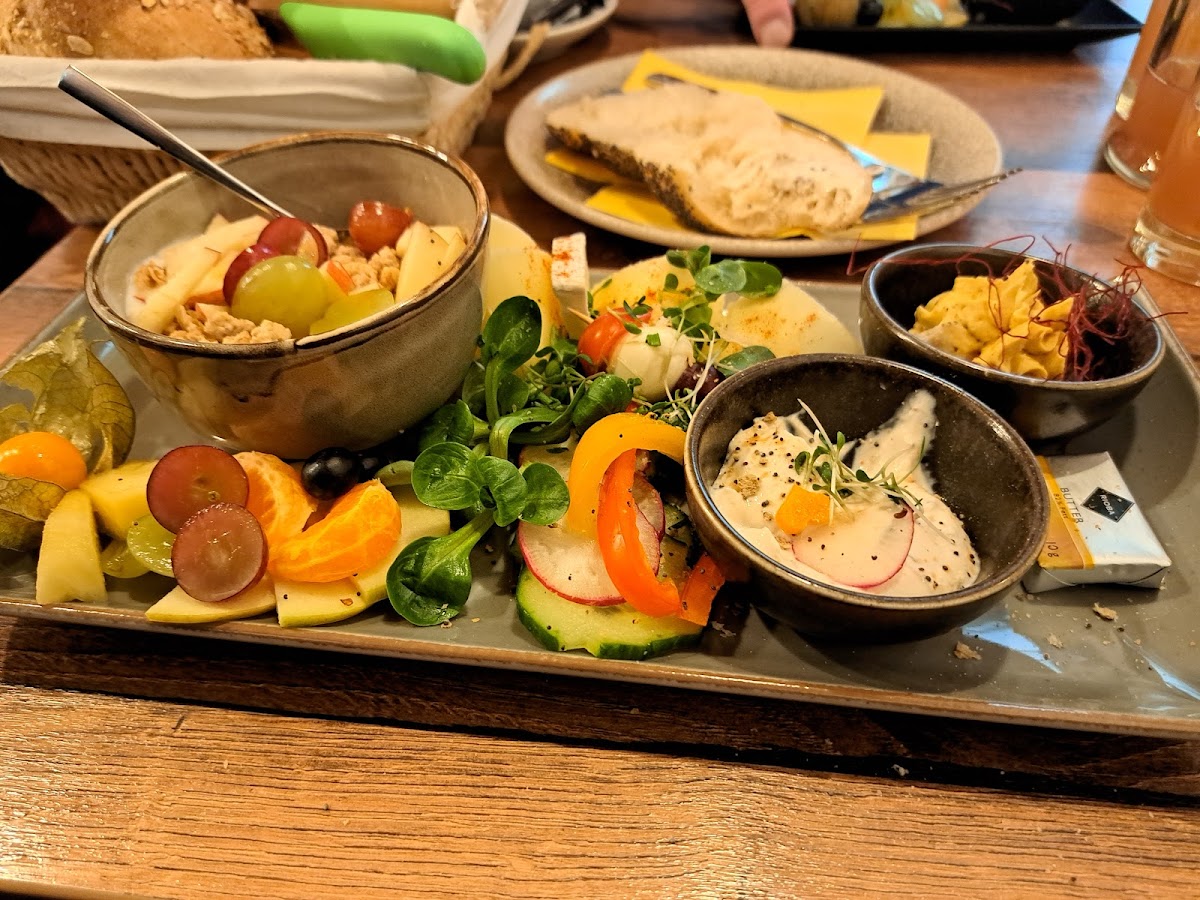 So schön kann einen ein Frühstück ein anlachen :-) Mit Liebe zubereitetes Frühstück bei tollem Ambiente. Wir fühlen uns jedes Mal sehr willkommen. Glutenfreies Gebäck zum Frühstück möglich, glutenfreies Müsli im Joghurt wäre noch ein Traum.